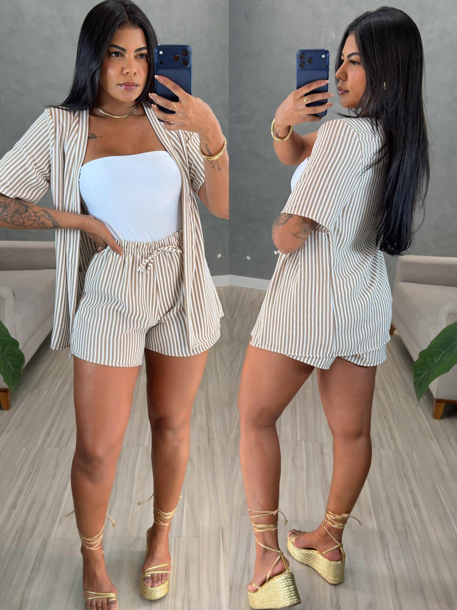Conjunto kimono listras (nude)