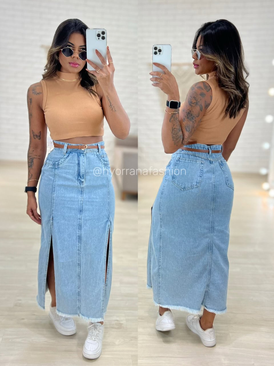 Saia jeans mid fenda